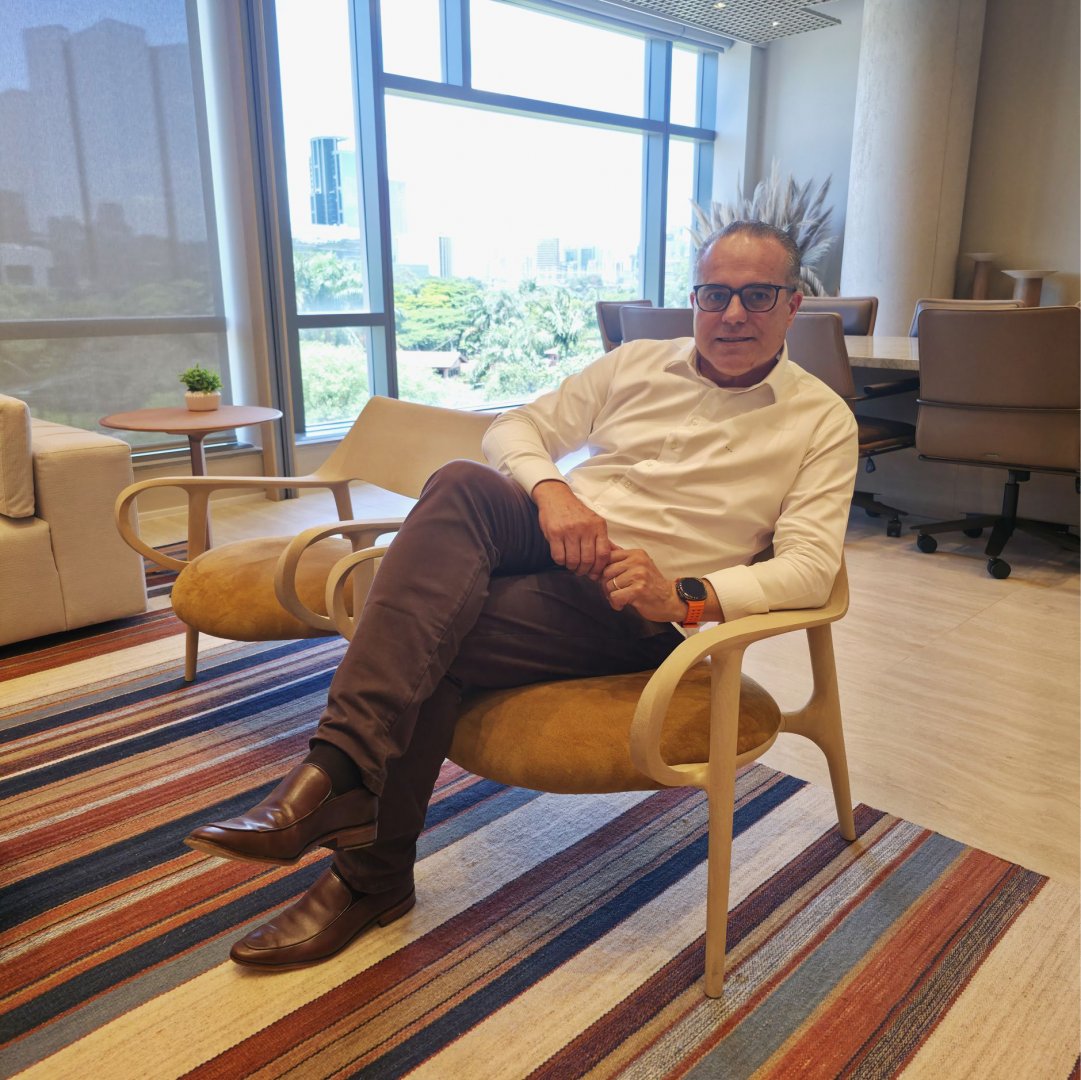 Ele admite: não é o cara mais equilibrado do mundo nesse quesito. Centralizador, exigente consigo mesmo e sempre vigilante, acaba se envolvendo mais do que o necessário em muitos processos. Mas encontrou sua forma de respiro. De manhã, o café com a família é sagrado. É ali que todos se conectam, alinham o dia e fortalecem os laços. À noite, o descanso domina. Cada um respeita o espaço do outro e a rotina funciona com naturalidade. Ele brinca dizendo que não dorme com a esposa há oito anos, mas acorda com ela todos os dias. Ela vai para o quarto ver séries, ele fica na sala assistindo noticiário e mais tarde se encontram. É simples, leve e funcional.