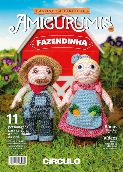 A Apostila Círculo Amigurumis 20 – Fazendinha conta com 11 personagens para celebrar a simplicidade da vida: o casal de fazendeiros (seu Ary e dona Ana), gato, porco, ovelha, carneiro, galinha, galo, duas opções de vacas e cachorro. Esta edição traz ainda vídeos exclusivos de pontos necessários para a finalização das peças, que podem ser acessados pelo aplicativo gratuito Love Círculo, disponível para Android e iOS. A apostila está disponível em bancas, armarinhos e lojas on-line.